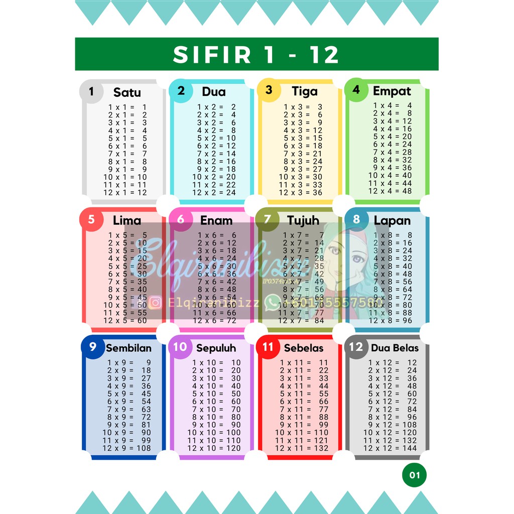 Jom belajar dan pandai sifir 1 hingga sifir 12.