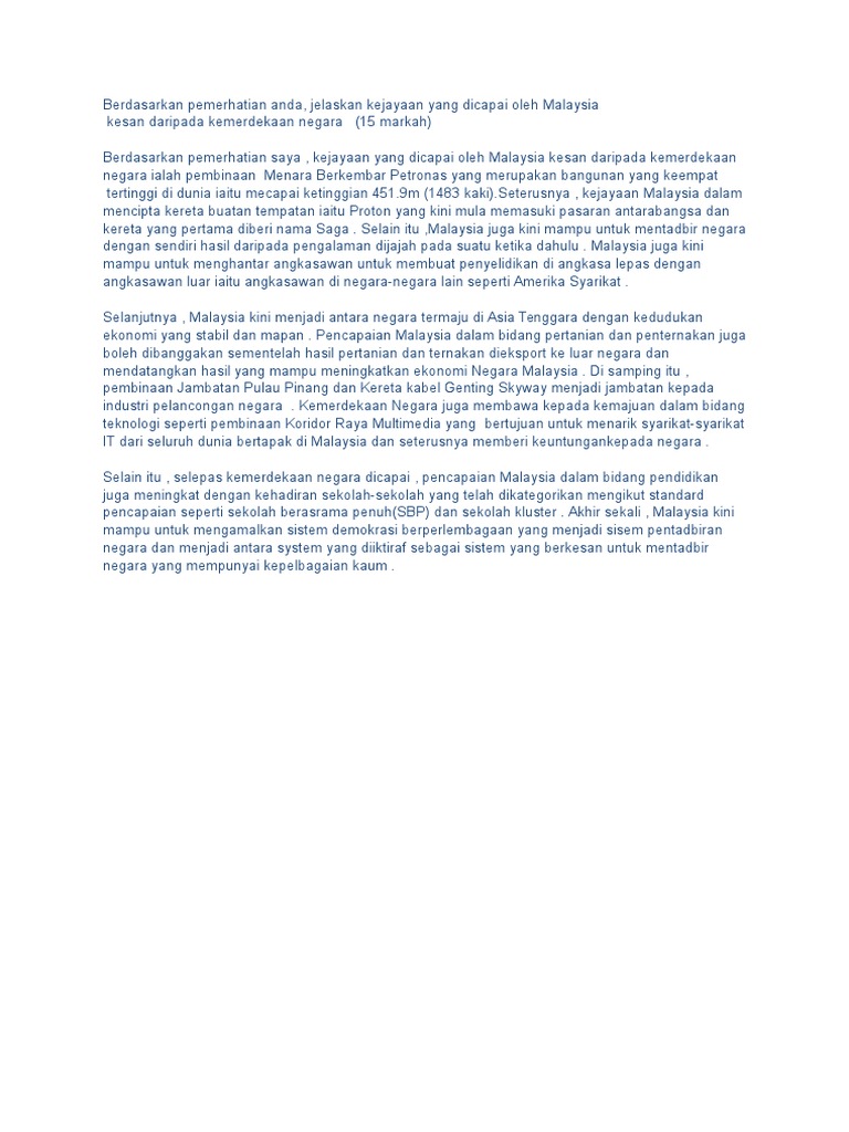 Kejayaan Malaysia Selepas Merdeka - Disebabkan pertanyaan pihak media amerika, pihak setiausaha media rumah putih terpaksa menafikan mereka yang menentukan tempahan hotel trump untuk najib.. Sebelum itu sarawak pernah dijajah oleh dinasti. Kejayaan negara pada hari ini adalah hasil usaha tanpa jerih perjuangan kita pada satu ketika dahulu bagi melihat sebuah negara bangsa yang bebas, diperintah dan ditadbir sendiri oleh rakyat. Tetapi, selepas berlakunya kemerdekaan pada 31 ogos 1957 tanah melayu dikenali sebagai malaysia dan turut berlaku perubahan yang besar dalam sistem pendidikan. Kejayaan malaysia seorang wartawan asing yang menghadiri mesyuarat khas pertubuhan persidangan isl am (oic) mengenai timur. Sistem pendidikan malaysai selepas merdekalaporan/penyata razakantara tujuan utama laporan.1.